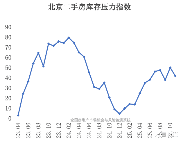 监测显示,2025年以来北京二手房库存压力指数震荡上升,即便8月新政带动9月市场短暂反弹,10月仍再度走弱。