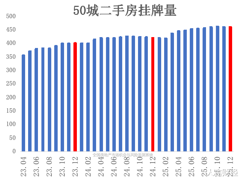 虽然个别城市挂牌量有所下滑,但从全国50个大中城市的监测数据来看,2024年挂牌量整体呈增长态势,仅年末两月略有回落。